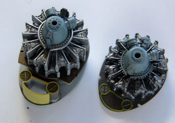 エンジンの比較。左がT社、右がH社。H社の方がフィンのモールド深いのでスミ入れが決まります。T社のウリはなんといってもダクトとインテークね。こういうのは優劣じゃなくてそれぞれにいい味があるんだよ。 |