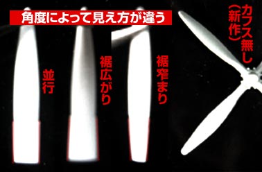 マリナーのプロペラ考、思いつくまま。ペラ形状についてmilk32+ さんより資料写真を頂きましたが、根元に行くに従って先窄まりの様に見えますね。ところが正面図によると並行のようで、インアクションには逆に先広がりに見えるものもあります。ご存じの通り僕には飛行機の経験値が決定的に不足していますので推測も困難。で、手持ちキットの雑多なペラパーツを首っ引きで眺めて見た所、なる程こういう事かぁ。カフの捻り角のせいで先窄まりにも先広がりにも見える事ワケね。んで早速修正。 |